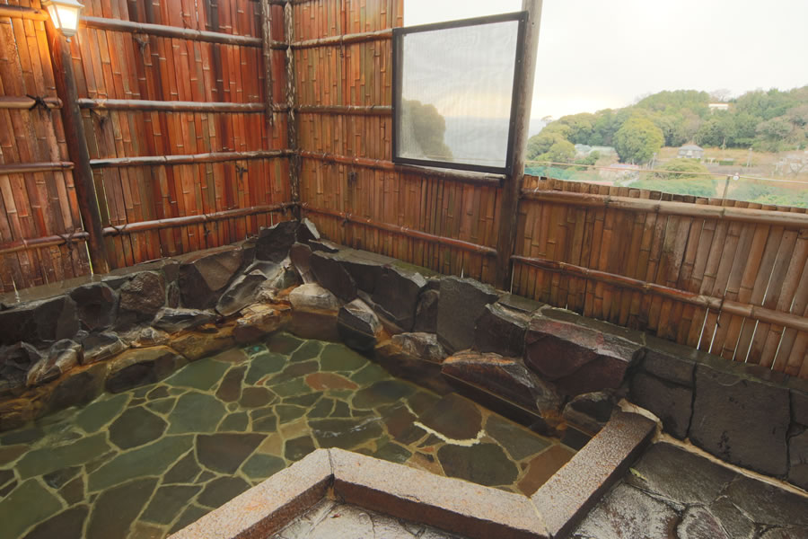 当館自慢の天然温泉の露天風呂、相模湾を一望でき夕焼けに染まる海、満天の星空を眺めるひと時は至福の時間・・