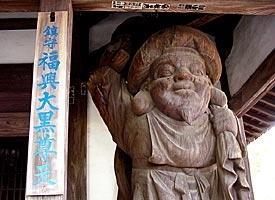 板橋地蔵堂は、正しくは金龍山宗福院と称し、本寺の南谷山香林寺が管理しています。本尊さんは、「延命子育地蔵大菩薩」で弘法大師のお作で、身の丈八尺の坐像の胎内にあるので「腹籠りのお地蔵さん」ともいわれています。永禄12年(1569年)湯本村古堂から移しました。毎年正月と8月の23日の大祭には、近郷近在から善男善女のお参りで大変な賑わいで、参道の両側は露店が軒を並べその盛況は今も昔も変わらぬようです。